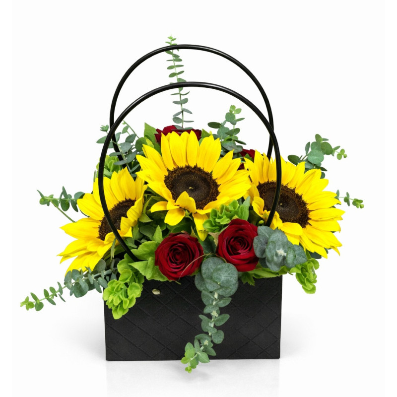 Espectacular arreglo en bombonera de cristal de 24 rosas rojas o el color de temporada o de preferencia, acompaña nacimientos, agradecimientos, cumpleaños, celebración del día de la Madre o día de la mujer. Incluye tarjeta.