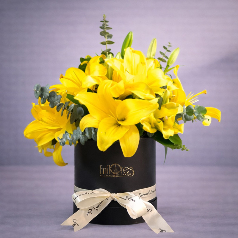 Llena de color y amor cualquier ocasión con esta elegante bombonera que combina variedades únicas de orquídeas como cymbidium, hawaianas y dendrobium. Perfecta para aniversarios, celebraciones o como un gesto especial, este diseño floral transmite diversidad y unidad en una presentación sofisticada.