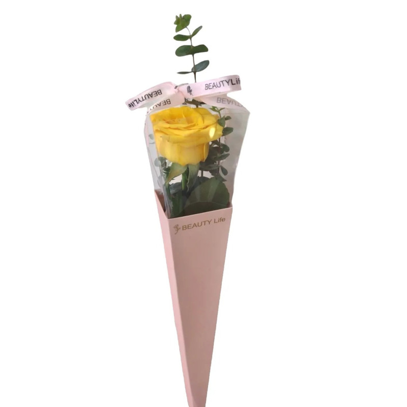 Solitario de rosa natural presentado en elegante estuche de cartón con cubierta en acetato transparente. Un detalle delicado y sofisticado, perfecto para sorprender en cualquier ocasión especial.